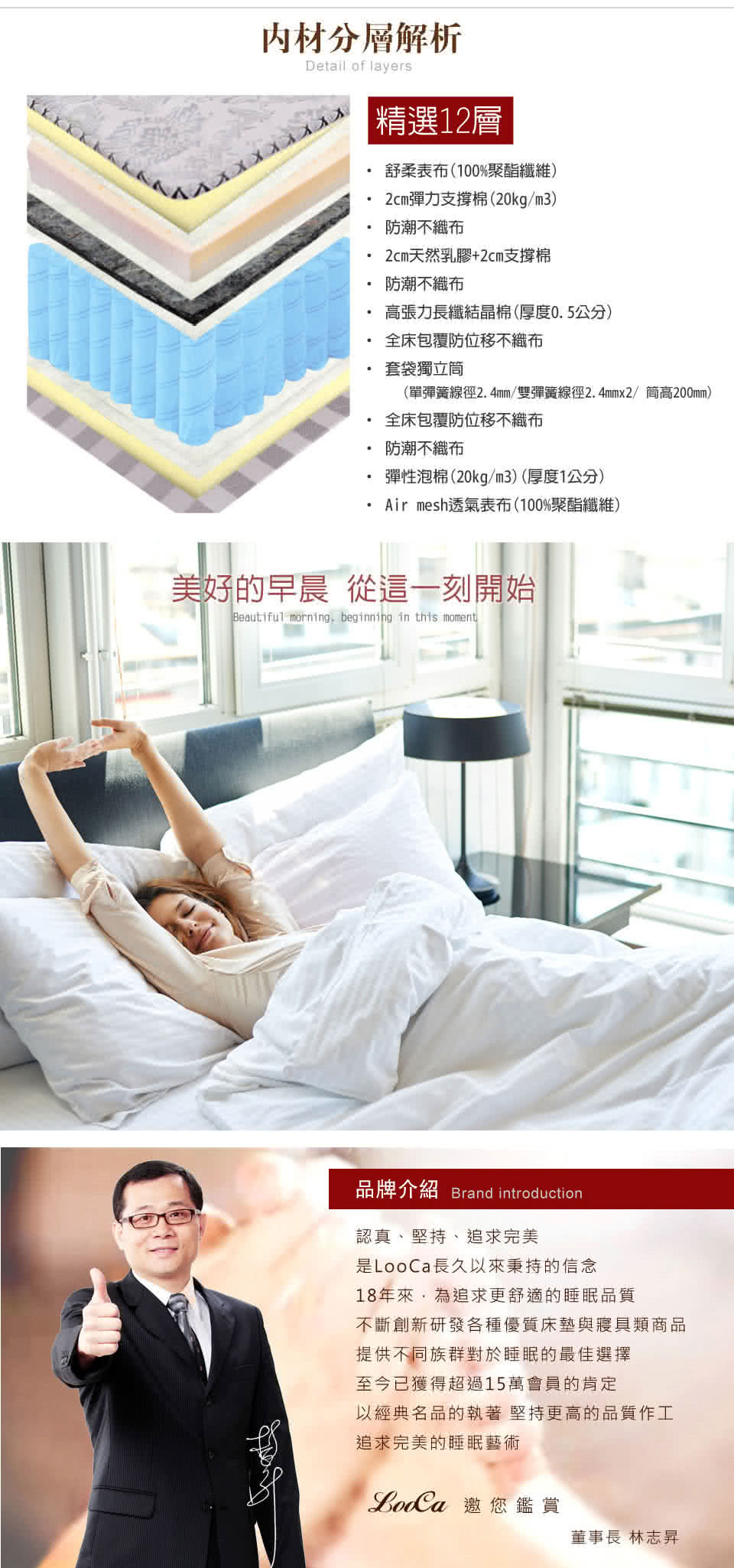 【LooCa】乳膠手工4.8雙簧護框硬式獨立筒床墊